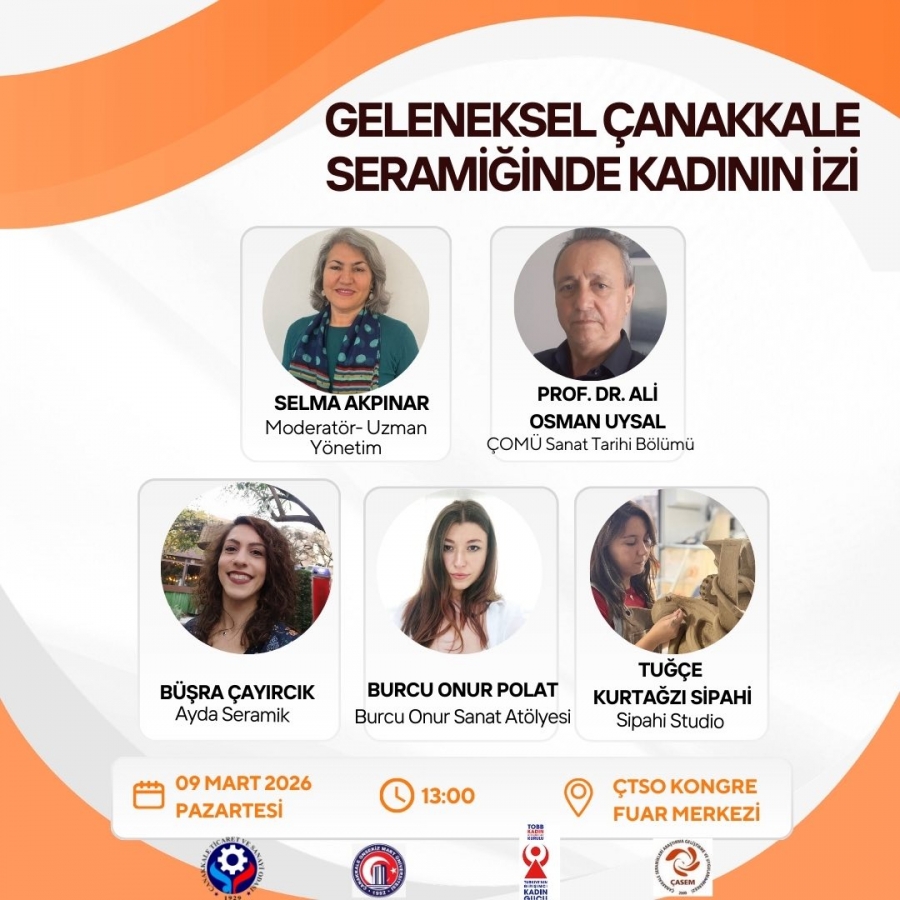 Çanakkale Ticaret ve Sanayi Odası ile TOBB Çanakkale Kadın Girişimciler Kurulu iş birliğinde, Dünya Kadınlar Günükapsamında “Biçim Anlam Kimlik” Seramik Çalıştayı Sergisi Açılışı ve “Geleneksel Çanakkale Seramiğinde Kadının İzi” başlıklı söyleşi düzenlenecektir.